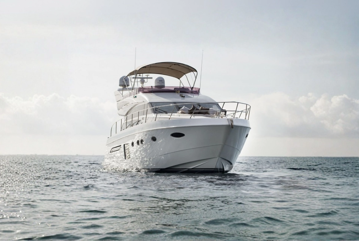 La vida a bordo se desarrolla principalmente en sus amplios espacios exteriores. El flybridge ofrece un entorno especialmente acogedor con una gran mesa de comedor, zonas abiertas de descanso y abundante espacio para disfrutar del sol. Ya sea para un tranquilo desayuno con vistas al puerto, un largo almuerzo en una bahía de aguas turquesas o unas copas al atardecer cuando la costa se tiñe de tonos dorados, la distribución permite compartir momentos con comodidad sin sensación de aglomeración. Una dedicada tripulación de dos personas garantiza un ambiente agradable durante todo el día, con un servicio atento y comidas recién preparadas que los invitados valoran especialmente.