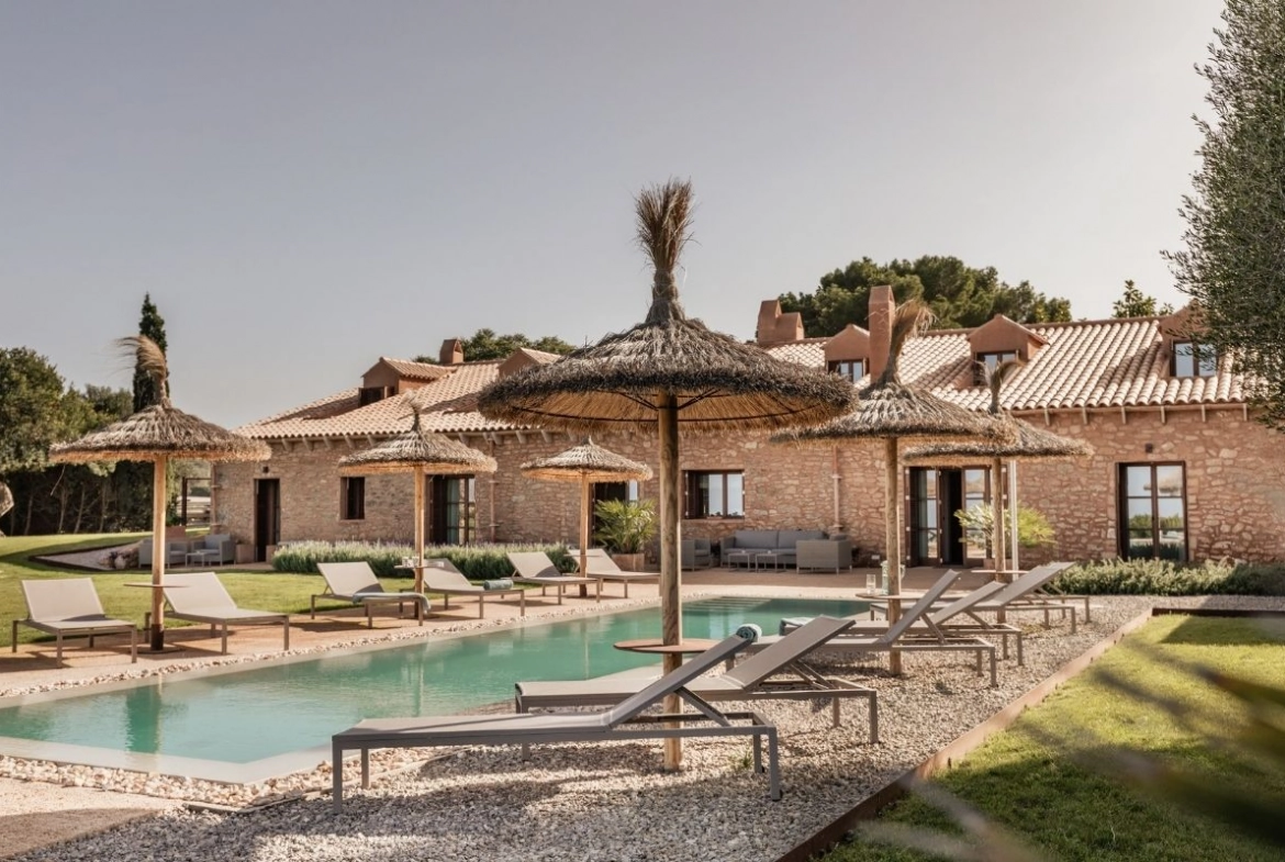 Rodeada por seis hectáreas de viñedos propios, Sa Talaia ofrece un nivel excepcional de privacidad en pleno paisaje rural mallorquín. Bajo amplios cielos abiertos y con vistas a campos ondulantes, la finca transmite una sensación de calma y desconexión, donde el ritmo se vuelve naturalmente más pausado.