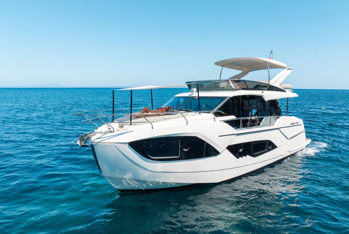 Compact in size, generous in spirit – the Absolute 47 Fly makes the most of every metre. This stylish flybridge yacht is ideal for a day charter in Mallorca, offering the perfect balance of comfort, functionality, and design. Its standout feature is the spacious flybridge – rare for a yacht in this size category – inviting you to lounge in the sun, enjoy lunch with a view, or simply take in the beauty of the Balearic coastline from above.